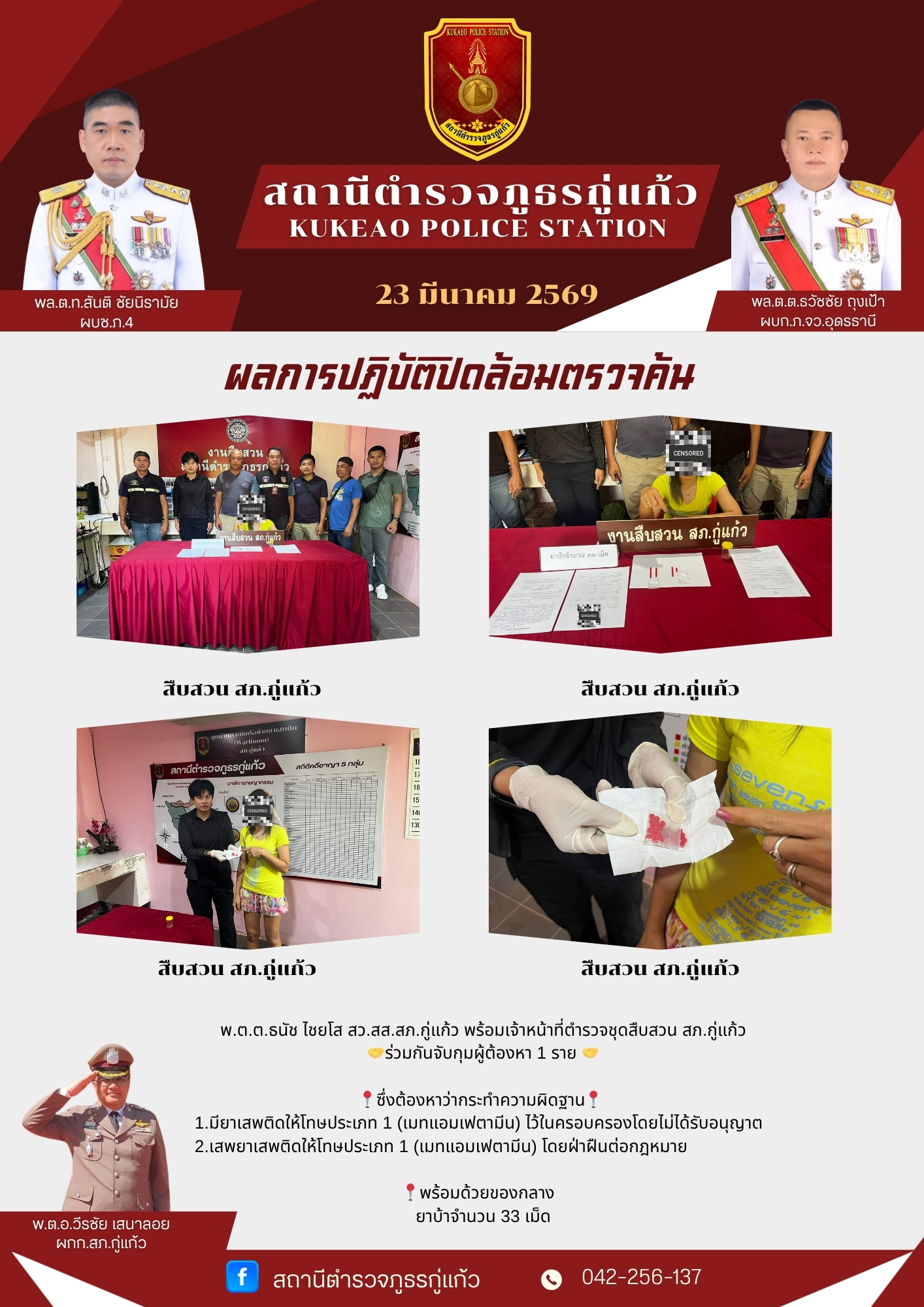 เรียน ผู้บังคับบัญชา วันที่ 9 มี.ค.2569 เวลา 13.30 น. พ.ต.อ.วีรชัย เสนาลอย ผกก.สภ.กู่แก้ว และเจ้าหน้…