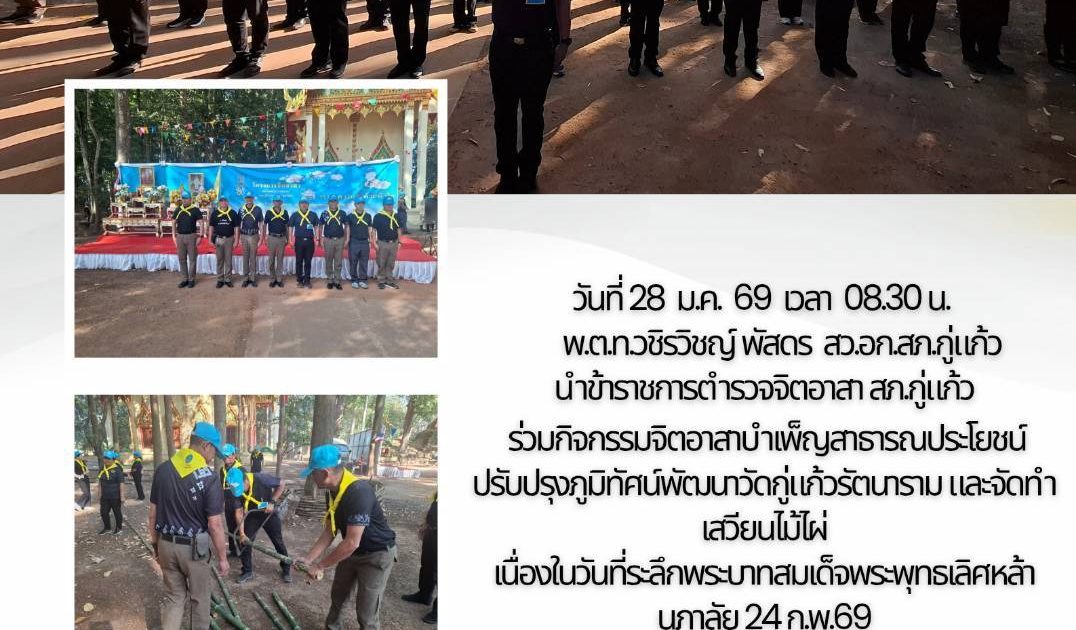 ร่วมกิจกรรมจิตอาสาบำเพ็ญสาธารณประโยชน์ ปรับปรุงภูมิทัศน์พัฒนาวัดกู่แก้วรัตนาราม และจัดทำเสวียนไม้ไผ่ เนื่องในวันที่ระลึกพระบาทสมเด็จพระพุทธเลิศหล้านภาลัย