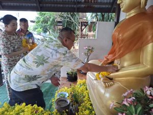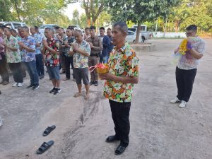 พร้อมข้าราชการตำรวจในสังกัดร่วมกิจกรรมสรงน้ำของพรพระพุทธรูปประจำ สภ.กู่แก้วและร่วมรดน้ำดำหัวขอพรจากผู้บังคับบัญชา เนื่องในโอกาสเทศกาลสงกรานต์ ประจำปี 2568