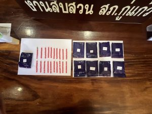 – ยาเสพติดให้โทษประเภท 1 (ยาบ้า) เม็ดลักษณะกลมแบนด้านหนึ่งผิวเรียบ ด้านหนึ่งประทับตัวอักษร wy จำนวน 1,463 เม็ด (เม็ดสีแดง 1,449 เม็ด,เม็ดสีเขียว 14 เม็ด)