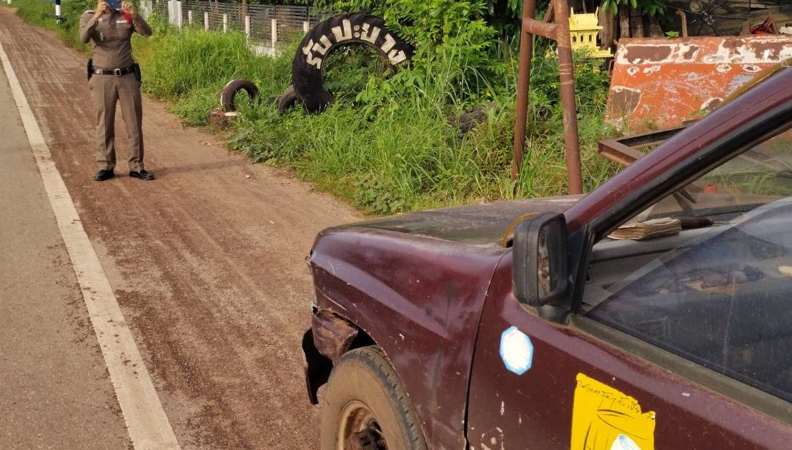 พ.ต.ท.นิรัน ทะวะระ สว.(สอบสวน)สภ.กู่แก้วว พร้อมด้วยเจ้าหน้าที่ตำรวจ ออกตรวจสอบเหตุรถยนต์เฉี่ยวชน