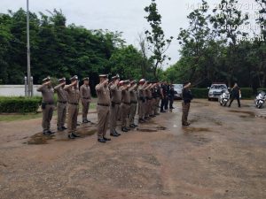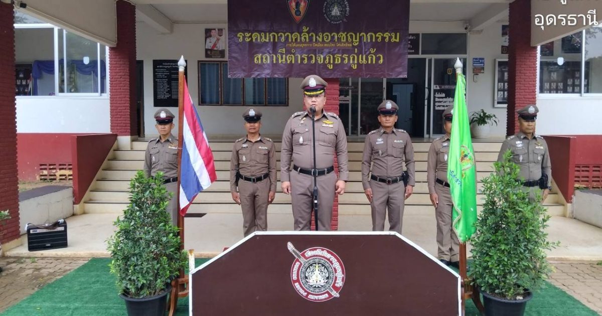 พร้อมข้าราชการตำรวจ สภ.กู่แก้ว,อาสาสมัครตำรวจบ้าน ร่วมพิธีการปล่อยแถวระดมกวาดล้างอาชญากรรม