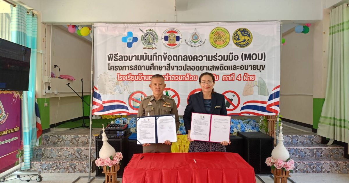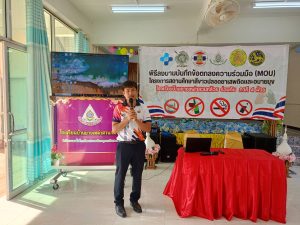 ร่วมพิธีลงนามบันทึกข้อตกลงร่วมมือ (MOU) โครงการสถานศึกษาสีขาวปลอดภัยยาเสพติดและอบายมุข ณ โรงเรียนบ้านยางเหล่าสวนกล้วย