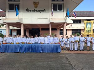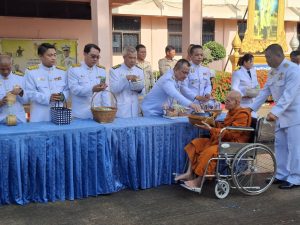 ร่วมพิธีเจริญพระพุทธมนต์ถวายพระพรชัยมงคลและทำบุญตักบาตร ถวายเป็นพระราชกุศล และพิธีถวายพระพรชัยมงคล